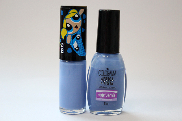 Hoje vamos comparar duas cores de coleções novas, o Sugar da Coleção "Meninas Super Poderosas" da Hits e o Horizonte Azul da coleção África à vista da Colorama.